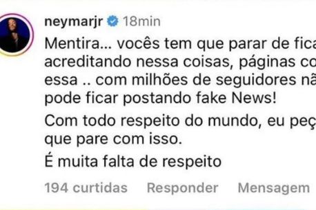 „O minciună! Trebuie să încetați să mai credeți astfel de lucruri. O pagină ca a voastră, care are milioane de urmăritori, ar trebui să nu mai publice știri false! Cu cel mai mare respect, vă cer să opriți asta, pentru că există multă lipsă de respect în ceea ce faceți”, a răbufnit Neymar, pe rețelele de socializare.