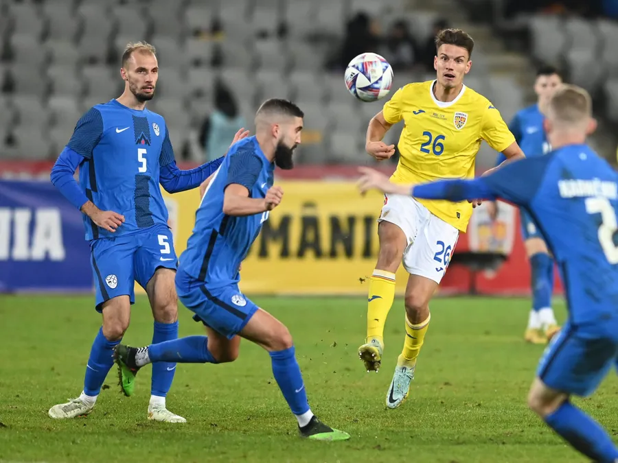 Jon Stanković si Daniel Boloca in meciul amical de fotbal dintre Romania si Slovenia, desfasurat pe Cluj Arena, pe 17 noiembrie 2022
