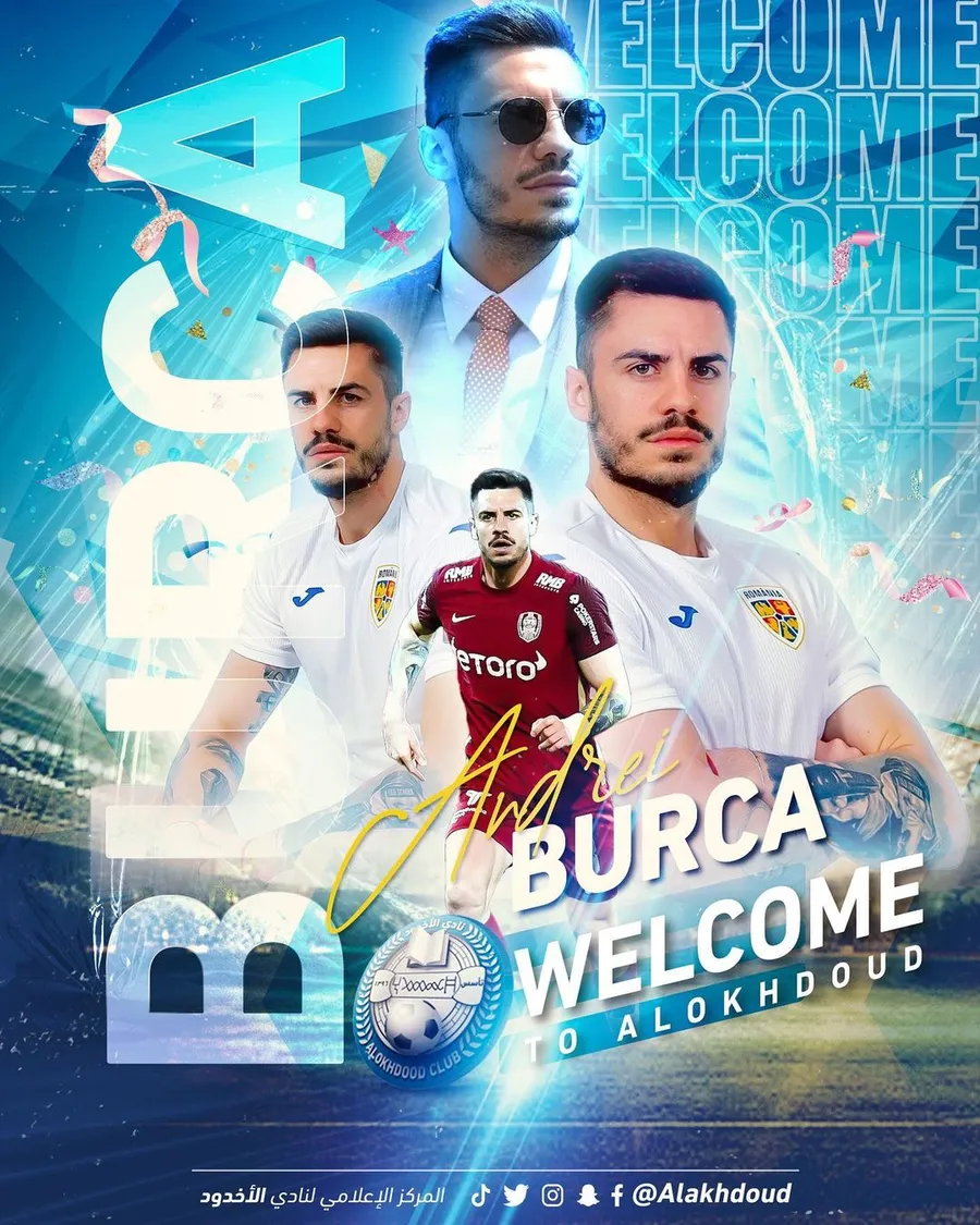 „Andrei Burcă, jucătorul nostru”, a transmis Al-Akhdoud pe Twitter, iar alături a adăugat un colaj foto cu internaționalul român.