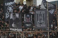 „Fraților, trăiți, voi ne conduceți” au scandat suporterii lui OFI Creta în momentele în care erau depuse coroanele.