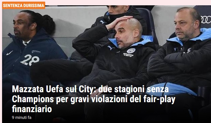 „Ar putea fi sfârșitul lui Manchester City în lumea bună a fotalului?”, se întreabă cunoscutul jurnalist italian Tancredi Palmeri.