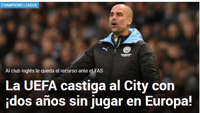 ? El Manchester City ha sido excluido de la Champions League para las dos próximas temporadas— Diario AS (@diarioas) February 14, 2020