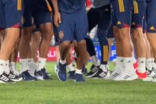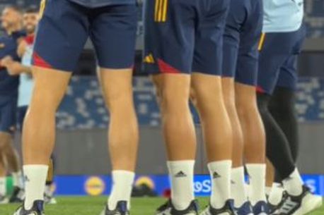 „Antrenamentul echipei Spaniei la Tbilisi, premergător meciului de mâine cu Georgia, nu s-a putut desfășura în cele mai bune condiții posibile. Valizele cu ghetele și mănușile jucătorilor nu au ajuns la destinație la ora dorită și vor ajunge la prima oră, în dimineața următoare. Sesiunea pregătitoare a fost atipică cu fotbaliștii îmbrăcați în adidași.