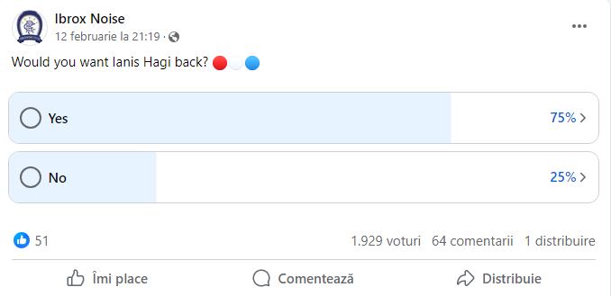 În secțiunea de comentarii, peste 60 de suporteri și-au manifestat opiniile. Unii au explicat de ce sunt împotriva unei reveniri a românului, în timp ce alții au transmis că Hagi Jr. mai merită o șansă: