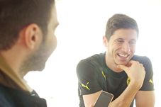 Echipa de la revista Ripensia Sport Magazin, format din Sergiu Suciu (reporter) și Sebastian Tătaru (fotograf și la ProSport) s-a întâlnit cu marele atacant al Borussiei miercuri, 12 martie, înainte de lunarul antrenament deschis publicului de la baza de antrenament de lângă Dortmund. Îmbărcat lejer, în tricou și pantaloni scurți de culoare neagră, Robert a primit cu simpatie trofeul din partea echipei de jurnaliști români, după care a răspuns cu amabilitate la toate întrebările. Chiar dacă timpul a fost limitat (n.r. – 15 minute), Lewandowski a vorbit despre trofeul primit, despre perioada petrecută la Dortmund, transferul la Bayern, relația cu suporterii Borussiei, obiectivele din această primăvară dar și despre favorita sa de la Campionatul Mondial.