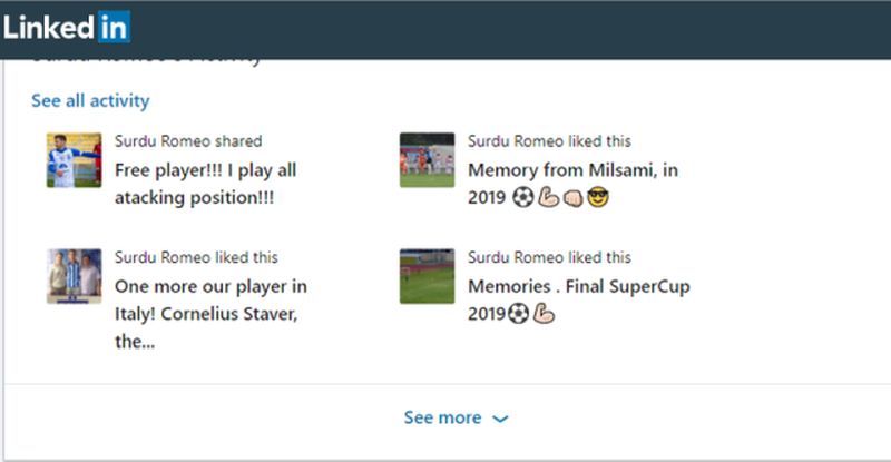 În vara trecută, Surdu a suprins după ce a postat pe LinkedIn un anunț prin care-și căuta un nou angajament. Pe profilul său erau link-uri către YouTube unde se prezentau golurile sale, iar el anunța: „Jucător liber. Joc pe toate poziţiile în atac”.