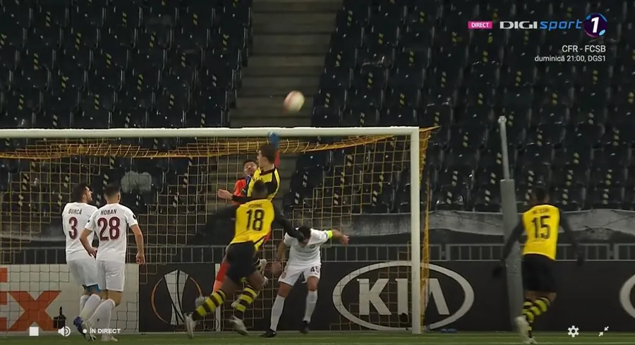 CFR Cluj a fost eliminată din Europa după un penalty acordat foarte ușor de arbitrul Benoît Bastien. Francezul a dictat lovitură de la 11 metri la o intervenție a portarului român, apoi l-a eliminat pe acesta pentru proteste.