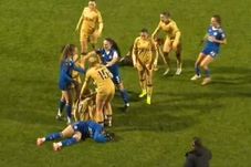 Meciul de fotbal feminin dintre Crystal Palace Women și Leicester s-a lăsat cu o bătaie în toată regula. O jucătoare și-a luat adversara de gât și a dat cu ea de pământ. Totul a plecat de conflictul verbal dintre Ruesha Littlejohn și Hannah Cain. Veterana irlandeză a apucat-o pe Cain de partea superioară a corpului și a pus-o imediat jos, scrie dailymail.co.uk.