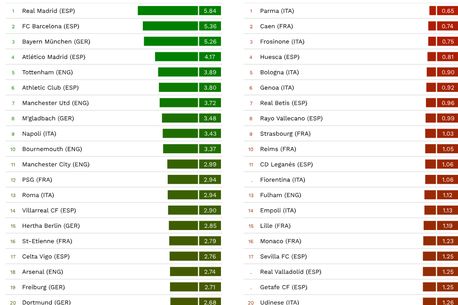 Cele mai stabile echipei din Europa din TOP 5 (Anglia, Spania, Franța, Italia, Germania)