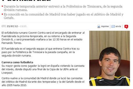Motivul? Fostul internațional român a semnat deja un contract cu formația spaniolă Fuenlabrada, iar mâine va fi prezentat ofical drept noul antrenor principal al trupei din Segunda B (Liga a III-a din Spania).