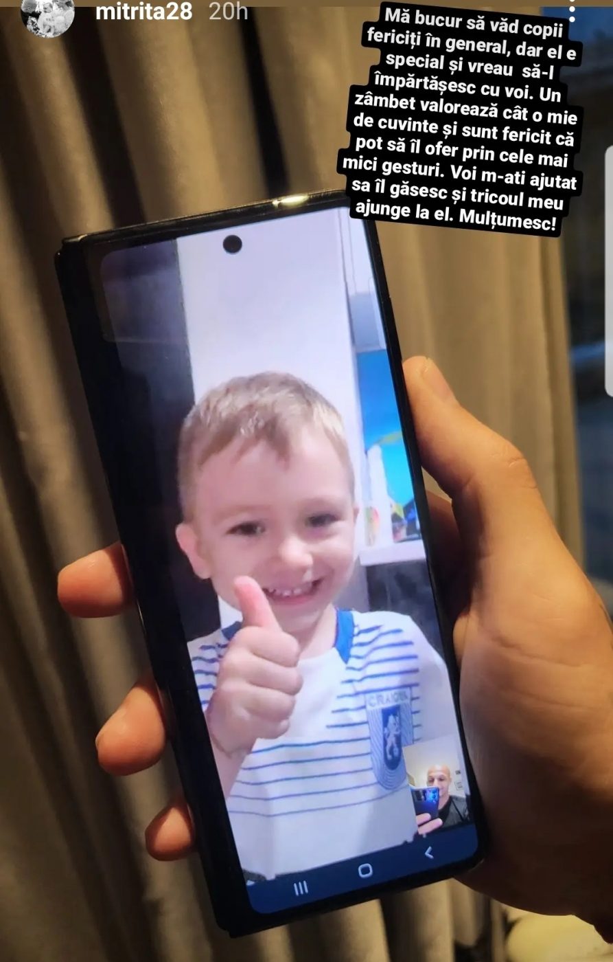 „M-am simțit extrem de emoționat la vederea acestui clip și vreau să aflăm împreună cine este acest băiețel. Tricoul meu de joc va ajunge la el și sper ca lacrimile să îi dispară de pe obraji,” a postat Mitriță pe o reţea de socializare, apoi a anunţat că a luat legătura chiar cu puştiul, pentru a-i trimite tricoul său. „Mă bucur să văd copii fericiți în general, dar el e special și vreau să-l împărtășesc cu voi. Un zâmbet valorează cât o mie de cuvinte și sunt fericit că pot să îl ofer prin cele mai mici gesturi. Voi m-ați ajutat să îl găsesc și tricoul meu ajunge la el. Mulțumesc”.