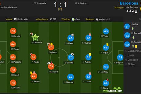 Alin Toșca a făcut parte dintr-o linie de cinci apărători și, potrivit statisticilor, a avut o evoluție decentă. Fundașul de 24 de ani a avut mai multe intervenții sigure pe parcursul meciului, însă site-ul de statistică whoscored.com i-a acordat doar nota 6,4, cea mai mică dintre cele ale titularilor lui Betis. A doua cea mai slabă notă a fost cea a lui Pardo, transferat de asemenea în cursul săptămânii.
