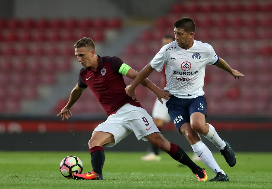 Velice Sumulikovski, pe finalul carierei de fotbalist, într-un duel în Cehia cu Sparta Praga
