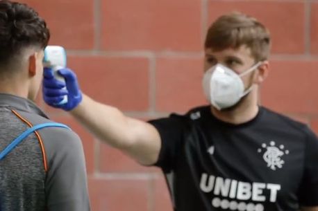 La intrarea în baza sportivă a lui Rangers, lui Ianis Hagi și coechipierilor săi le-a fost luată temperatura. De asemenea, aceștia au avut pregătite toate materialele necesare pentru antrenament și locuri personalizate rezervate cu o distanță corespunzătoare între ele.
