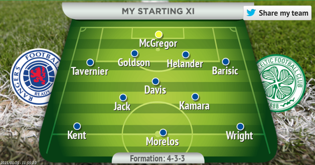 Glasgow Live scrie că Gerrard îl va folosi pe Ryan Kent în locul lui Ianis Hagi, iar Wright va juca în partea stângă a ofensivei.