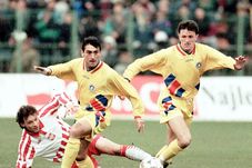 FOTO / Ilie Dumitrescu, surprins în aprilie 1995, într-un meci la naționalei împotriva Poloniei. Atunci, Dumitrescu juca la Sevilla