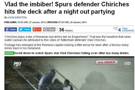 „Vlad, bețivul!”, au titrat englezii de la Daily Mail după ce au văzut imaginile cu Chiricheș.
