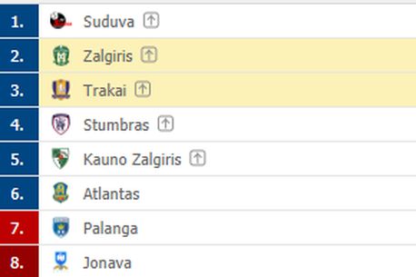 Cu o etapă înaintea finalului de campionat, Zalgiris se află pe locul 2, la 5 puncte de Suduva.