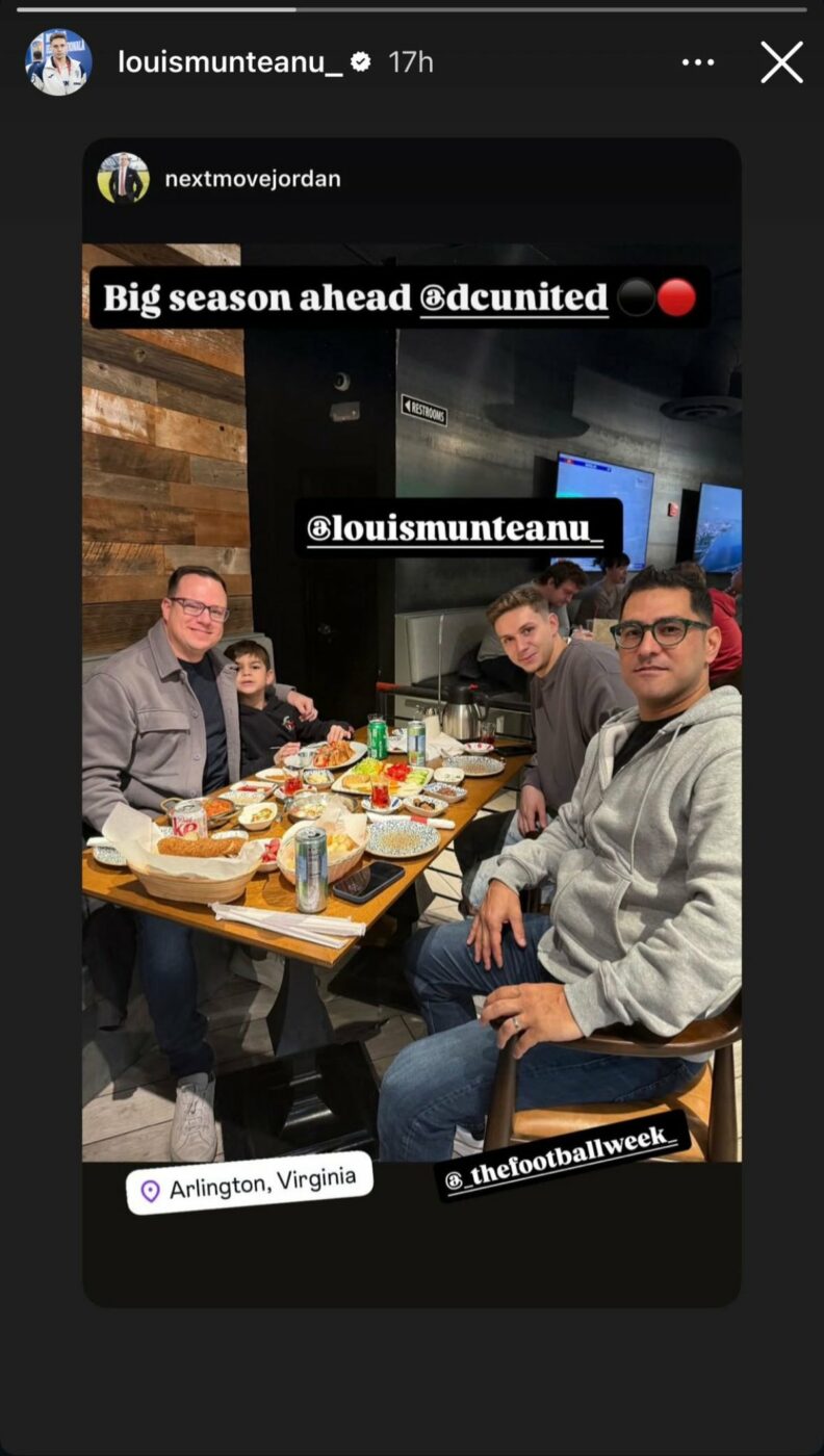 „Urmează un sezon mare”, a scris Louis Munteanu, pe Instagram Stories, alături de o fotografie cu Jordan Stuart, patronul clubului DC United, cinând împreună. Louis Munteanu este tratat în America ca un adevărat star. Noul număr „11” al lui DC United este pregătit pentru un nou sezon.