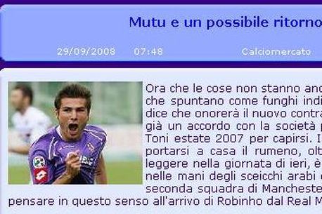 Site-ul fiorentinanews.it notează că arabii de la Manchester City doresc neapărat să îl aducă pe Mutu alături de Robinho în atacul formației britanice.