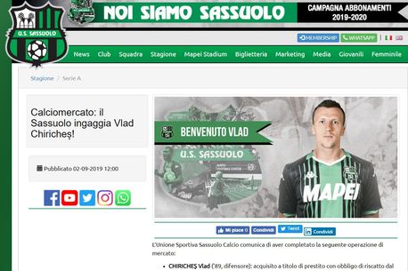 „Bine ai venit, Vlad. Societatea Sportivă Sassuolo anunță următorul transfer: