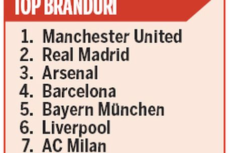 cincilea brand din lume ca valoare după Manchester United, Real