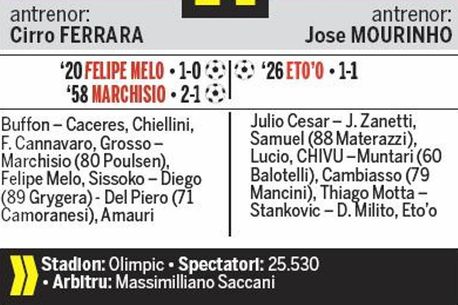 eșec în campionat, fiind învinsă cu 2-1 pe „Olimpico” din Torino de