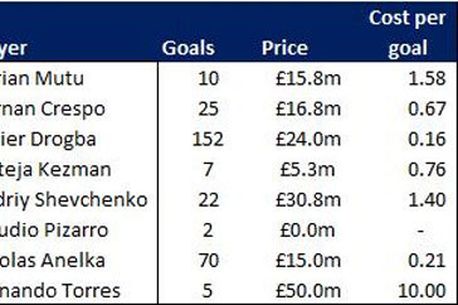 În clasamentul banilor pe care nu i-a meritat, Mutu urcă pe un „onorabil” loc secund, cu 1,58 de milioane de euro per gol, în spatele deja „legendarului” Torres, cu 10 milioane încasate pentru fiecare din cele 5 reușite marcate până acum pentru Chelsea.