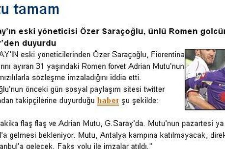 Transferul lui Mutu la Istanbul este anunțat pe Twitter de Özer