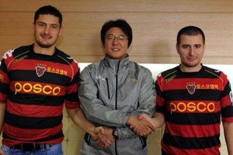 Jucătorul a pozat pentru prima dată în tricoul noii echipe, alături de cealaltă nouă achiziție a celor de la Pohang, sârbul Zoran Randulic.