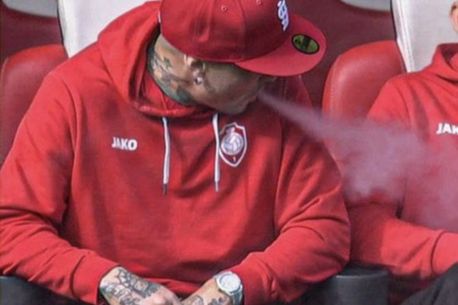Radja Nainggolan, fost internațional belgian și campion al Italiei cu Inter Milano, a fost surprins în timp ce fuma o țigară electronică pe banca de rezerve.