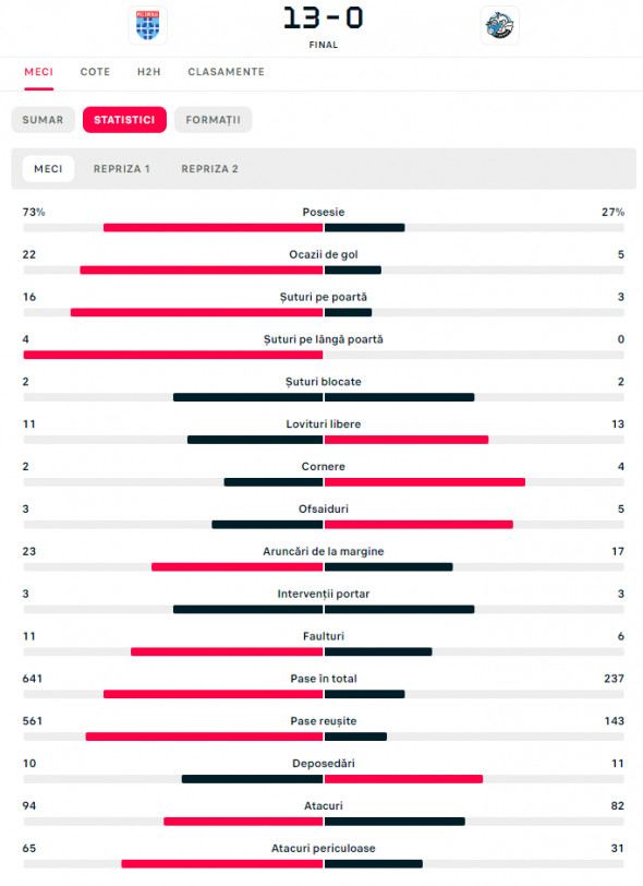 Jucătorii de la Zolle nu aveau de gând să se oprească aici, iar în minutul 31 aveau deja 7-0, scor care a rămas neschimbat până la pauză. În partea a doua a confruntării gazdele au continuat să atace fără milă poarta adversă și au ajuns astfel la scorul final de 13-0.