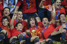 Puyol (centru) a devenit campion mondial cu Spania în anul 2010. (FOTO: AFP)