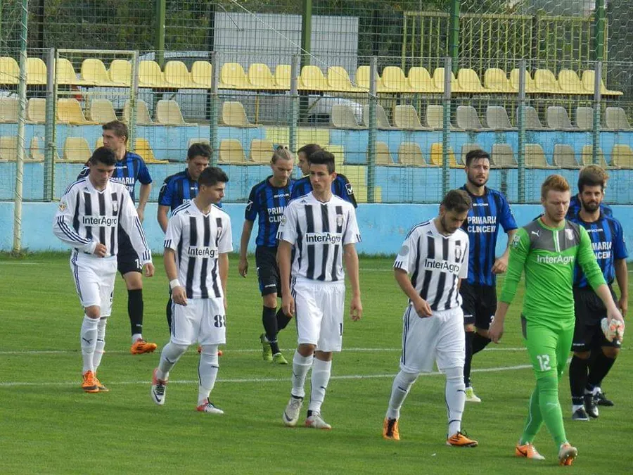 Costin Popescu (foto stânga), în tricoul celor de la Unirea Târlungeni, în Liga 2, într-o partidă împotriva celor de la „U” Cluj