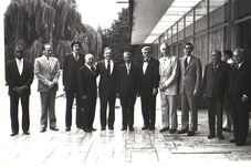 Ștefan Andrei (al doilea din stânga) pe 12 august 1979, la primirea la București, de către Nicolae Ceaușescu, a delegației de congresmeni americani condusă de John Stephen Brodemas, lider al majorității democrate din Camera Reprezentaților a SUA. FOTO: Fototeca online a comunismului românesc