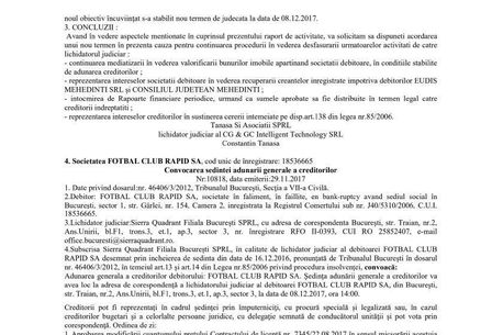 Iată convocatorul ședinței de azi, în care s-a votat scăderea chiriei pentru marca SC FC Rapid SA de la 5.000 de euro la 2.000 de euro pe lună.