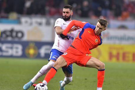 Radu Stefanita Boboc si Octavian George Popescu in meciul de fotbal dintre FCSB si Farul Constanta, contand pentru Play-off-ul Ligii 1 Casa Pariurilor, desfasurat pe Arena Nationala din Bucuresti, luni 14 martie 2022. © FOTO:Razvan Pasarica/SPORT PICTURES