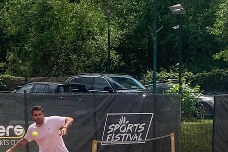 „Our special guest today ?! Adrian Mutu ne-a vizitat astăzi la Winners Sports Club Cluj-Napoca și a schimbat mingea de fotbal cu cea de tenis. ⚽️? Partenerul lui pe teren a fost Patrick Ciorcila, fost tenisman și actual manager al festivalului.