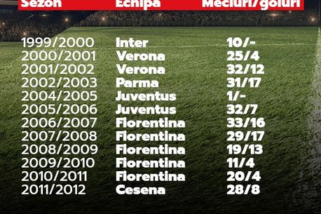 Adrian Mutu, 41 de ani, și-a petrecut cea mai mare parte a carierei de fotbalist profesionist în Seria A, unul dintre cele mai puternice campionate din lume. ”Briliantul” a jucat pentru Inter, Verona, Parma, Juventus, Fiorentina și Cesena, cea mai lungă perioadă fiind petrecută la Florența.
