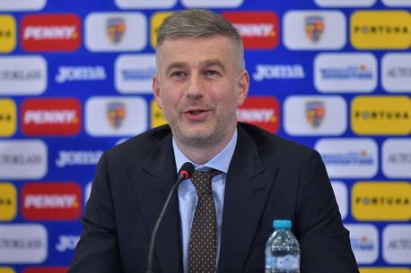 Edward Iordanescu si Razvan Burleanu prezenti la conferinta de presa prilejuita de prezentarea noului selectioner al Romaniei, desfasurata la centrul National de Fotbal de la Mogosoaia, marti 25 ianuarie 2022. © FOTO:Razvan Pasarica/SPORT PICTURES