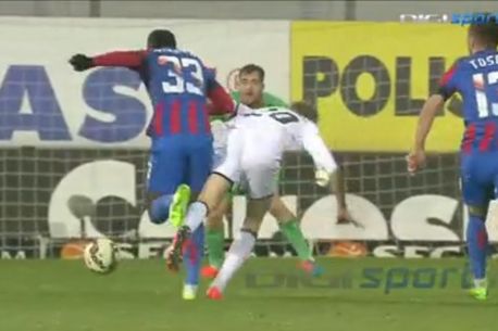 În minutul 54, Varela îl împiedică cu piciorul pe Dan Roman și îl împinge cu antebrațul pe atacantul lui Gaz Metan Mediaș, dar nu se fluieră nimic