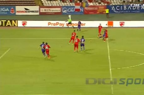 Captură Digisport care arată poziția afară din joc în care a fost surprins Zicu în finalul primei reprize, situație neobservată de arbitri