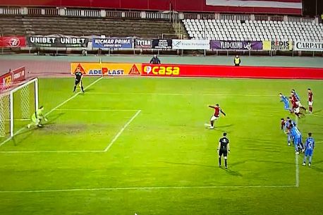 Fapte: În minutul 58, Claudiu Belu aflat în luptă corp la corp cu un adversar, cade în interiorul suprafeței de pedeapsă adverse în apropierea arbitrului asistent de pe acea parte. Acesta ridică prompt steagul semnalizând un fault iar arbitrul acordă lovitură de la 11 metri.