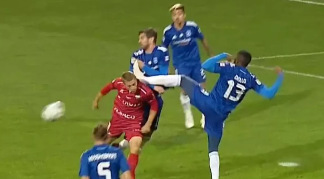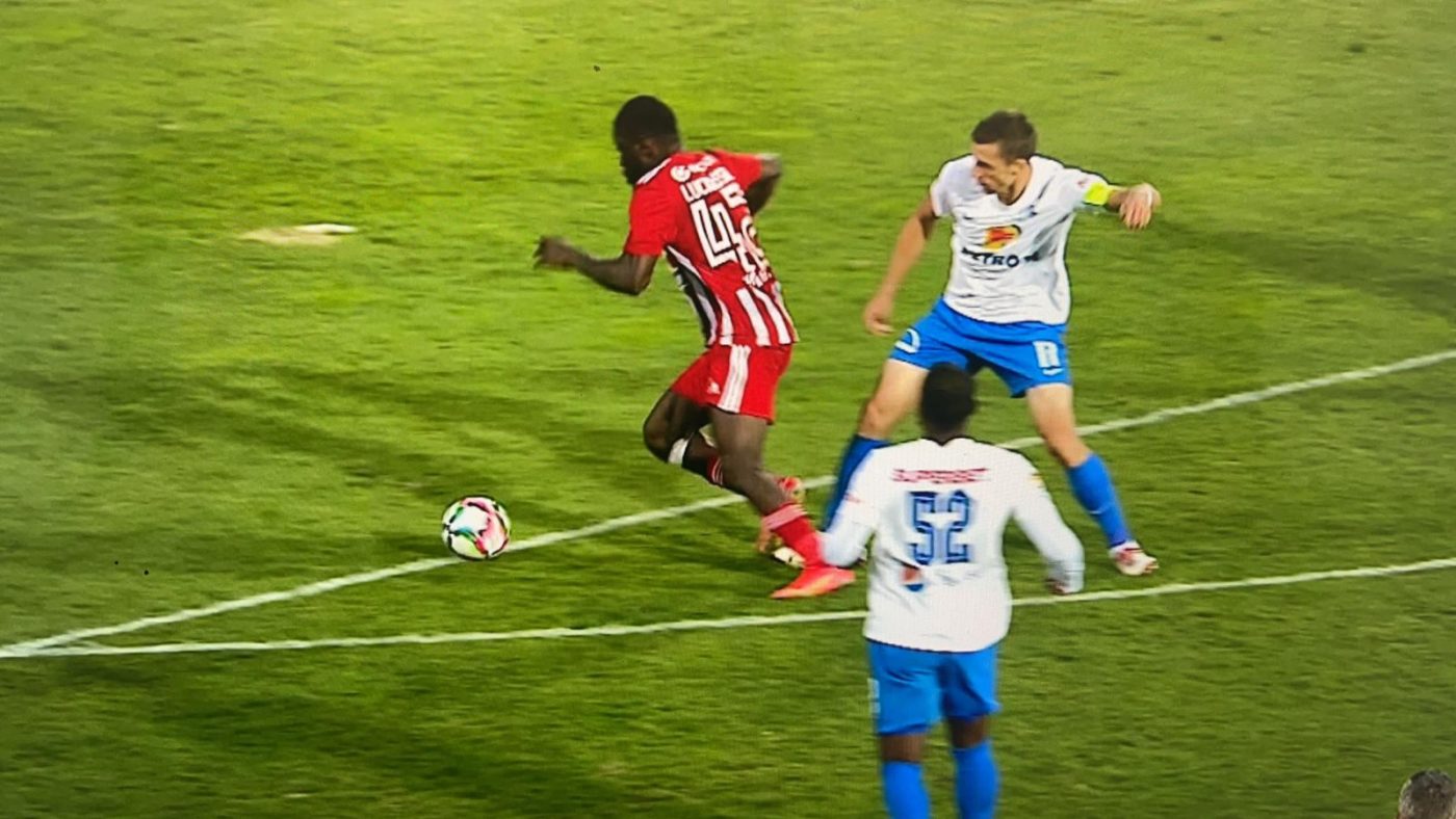 Analiza: Faptul că jucătorul craiovean ridica piciorul într-un mod nepermis este evident și cred că a fost depistat de orice persoană prezentă la joc. Am încercat să găsesc o explicație punanadu-mă în pielea arbitrului, de ce a lăsat jocul să continue la o asemenea fază.