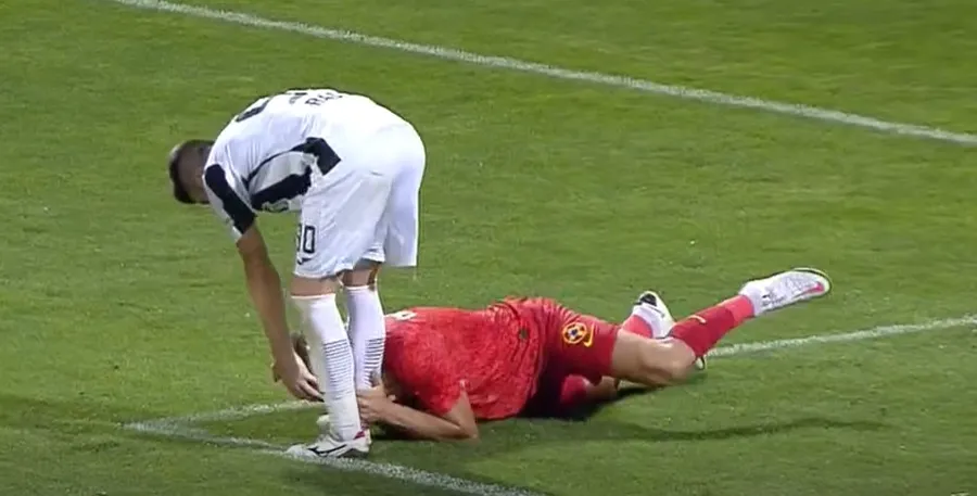 În repriza a doua, Andrei Miron a fost faultat de Mihai Răduț în propriul careu, iar când era întins pe gazon a făcut un gest ca și cum ar fi vrut să-l muște de picior./https%3A%2F%2Fwww.prosport.ro%2Fwp-content%2Fuploads%2F2020%2F08%2Fmiron.jpg)