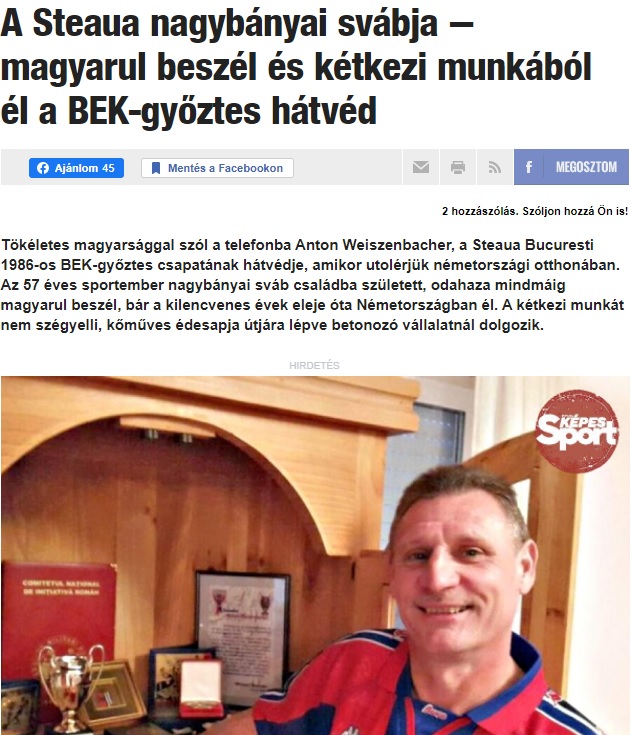 Anton Weissenbacher a făcut parte din lotul echipei din Ghencea, iar acum a povestit viața sa într-un interviu acordat presei maghiare.