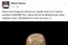 „Oare sunt singurul căruia nu-i pasă care va fi soarta acestei oribilități? Eu, când mă uit la defecțiunea asta, realizez doar că Maestrul a avut și umor ;)”, a postat Stoica pe contul său.
