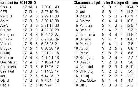 E clar că Botoșani, Brașov și CFR Cluj au o cădere față de tur. Moldovenii sunt în retur pe 12, după ce astă-toamnă terminaseră pe 7. La Brașov și CFR este vorba de altceva. Amândouă intrate în insolvență, cluburile sunt în picaj. CFR, penalizată cu 24 de puncte, e deja condamnată la retrogradare și nu mai are forța să se ridice. Brașov, victimă a politicii conducătorilor față de jucători și antrenori, coboară treptat spre liga secundă. Lor li se adaugă constantele Gaz Metan, Ceahlăul și Oțelul, formații care merg prost acum, la fel ca și în tur, ocupând în ambele clasamente locuri retrogradabile.