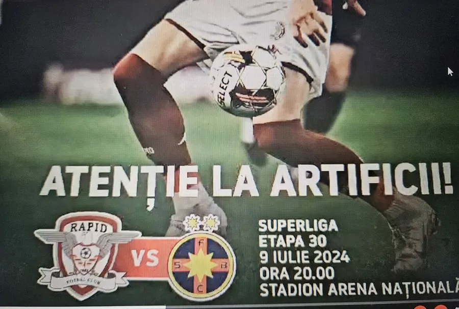„Atenție la artificii”, a titrat programul de meci publicat de clubul Rapid la meciul cu FCSB. Imediat după ieșirea echipelor pe teren, peluza giuleșteană a declanșat spectacolul pirotehnic pregătit cu torțe, fumigene și tot felul de materiale pirotehnice interzise conform legii pe stadioane. La fel, în debutul reprizei secunde, galeria alb-vișinie a aprins o nouă salbă de torțe. De partea cealaltă, rivalii de la FCSB au răspuns în același fel, atât în startul meciului, cât și în repriza secundă.