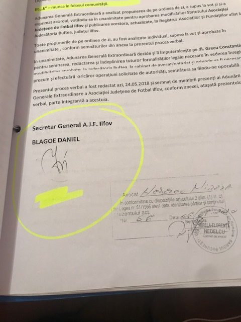 În afară faptului că au falsificat Statutul, unul din persoanele menționate mai sus și-a permis să ducă la o instanța de judecată (Judecătoria Buftea) documente cu semnătură falsificată a secretarului general al AJF Ilfov, Blagoe Daniel!